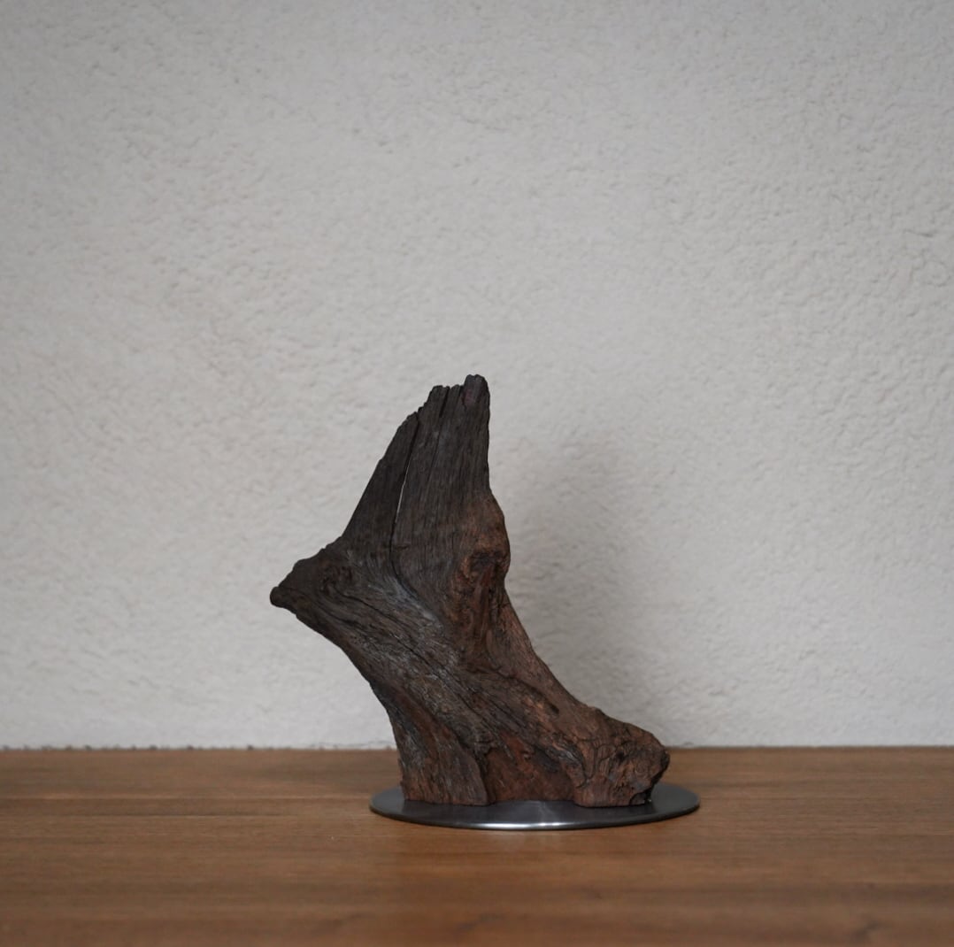 Wood Stand.| 【一点物】ラウンドヘアライン・ステンレスベース × 流木